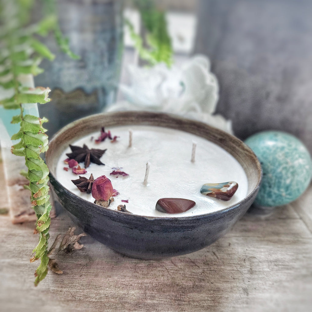 Ingredients: Soy Wax, Ocean Jasper Crystal, Clove, Star Anise, Rose Petals, Fragrance.