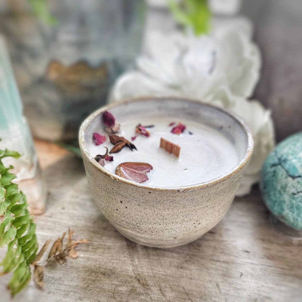 Ingredients: Soy Wax, Ocean Jasper Crystal, Clove, Star Anise, Rose Petals, Fragrance.